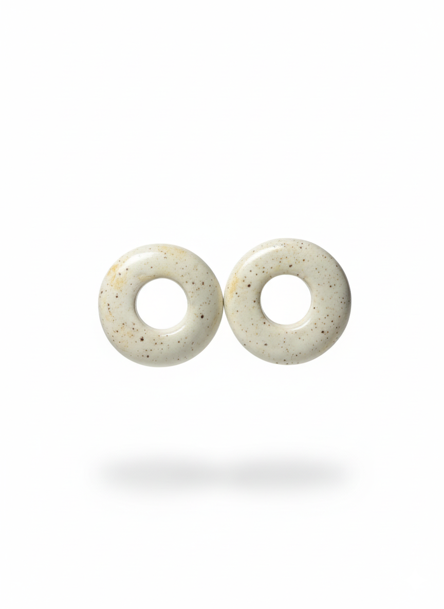 Los Barbate están inspirados en la serenidad de las playas de Barbate, donde el mar Atlántico se mezcla con tonos cálidos y naturales. Su cerámica en color crema salpicado recuerda a la textura de la arena fina y al sol que cae sobre la costa gaditana. Hechos a mano en cerámica artesanal y esmaltados uno a uno, son ligeros, únicos y perfectos para quienes buscan un toque de dramatismo y elegancia en su look.