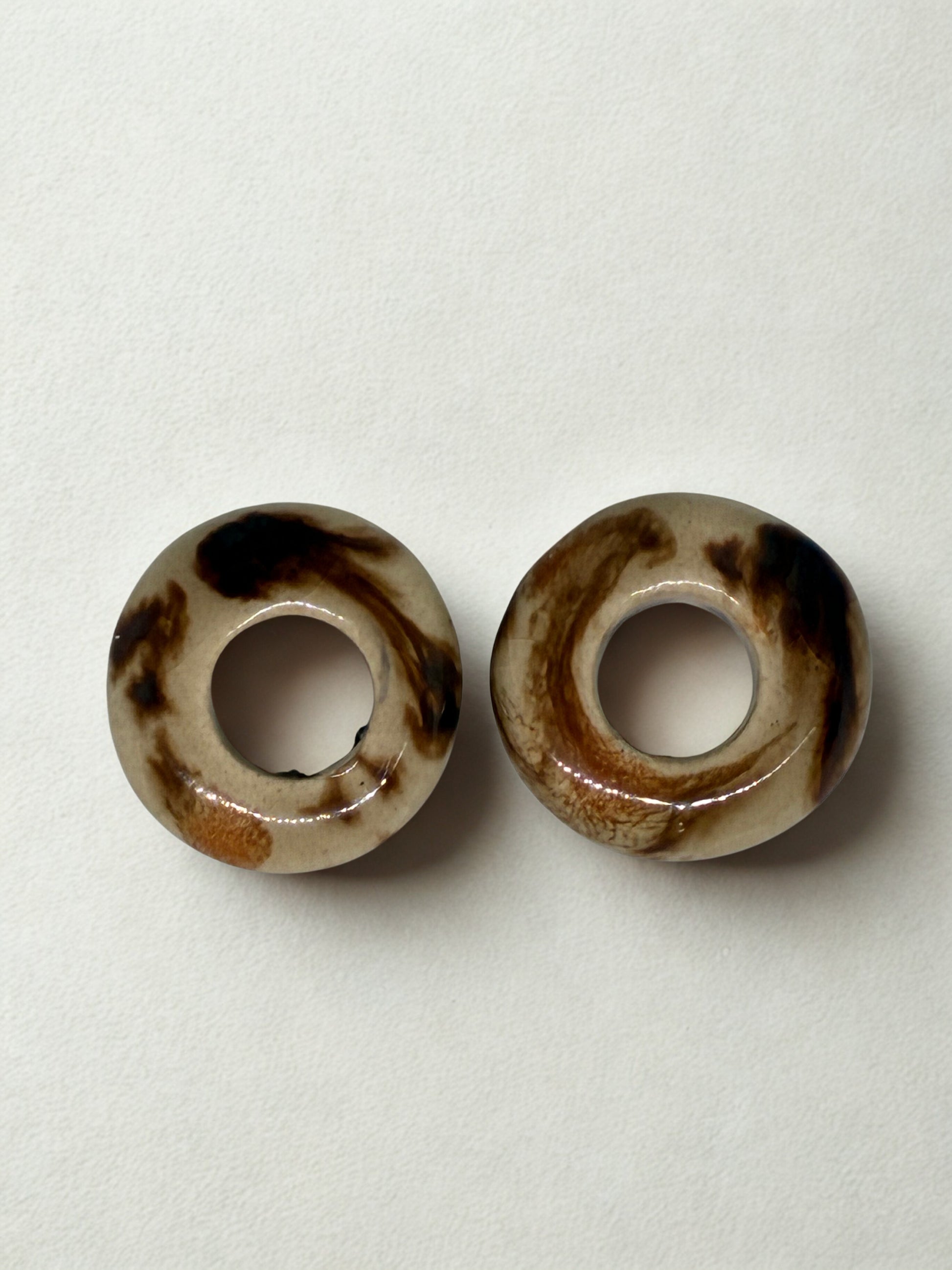 Inspirados en las ruinas de Pompeya, los Pompeii combinan tonos terrosos y minerales que evocan la fuerza de la historia. Hechos a mano en cerámica y esmaltados uno a uno, cada par es único, ligero y perfecto para acompañarte en cualquier ocasión.