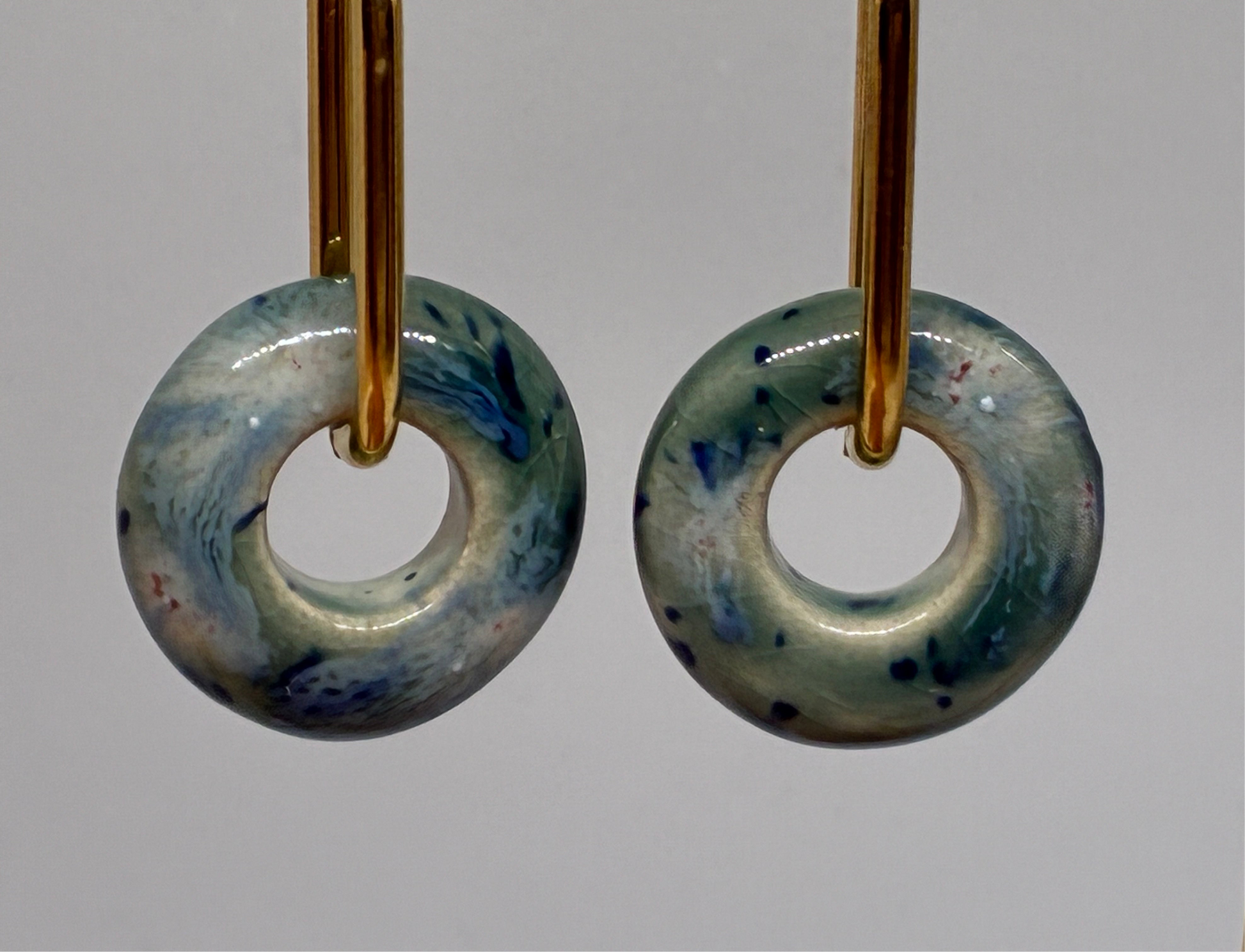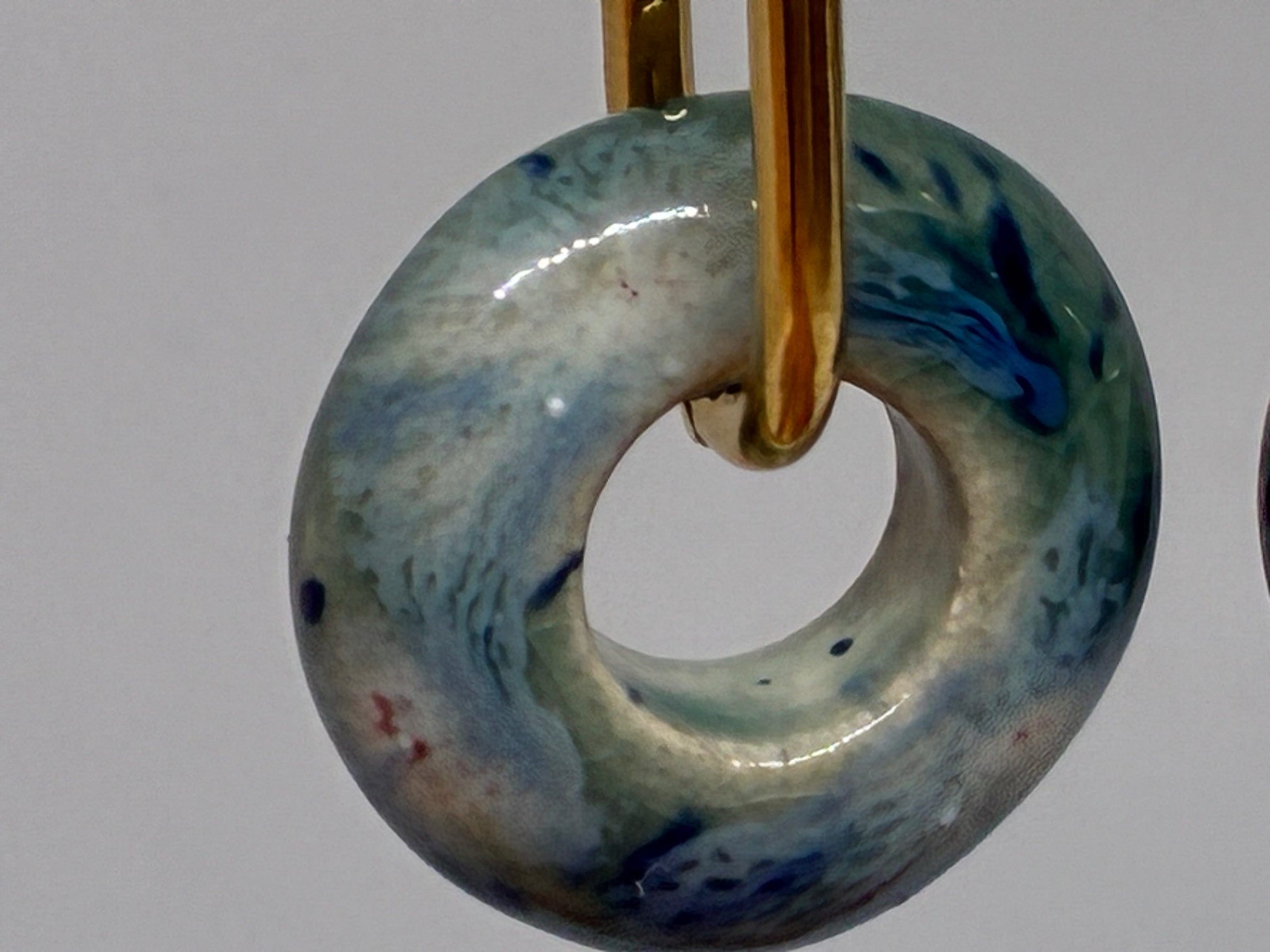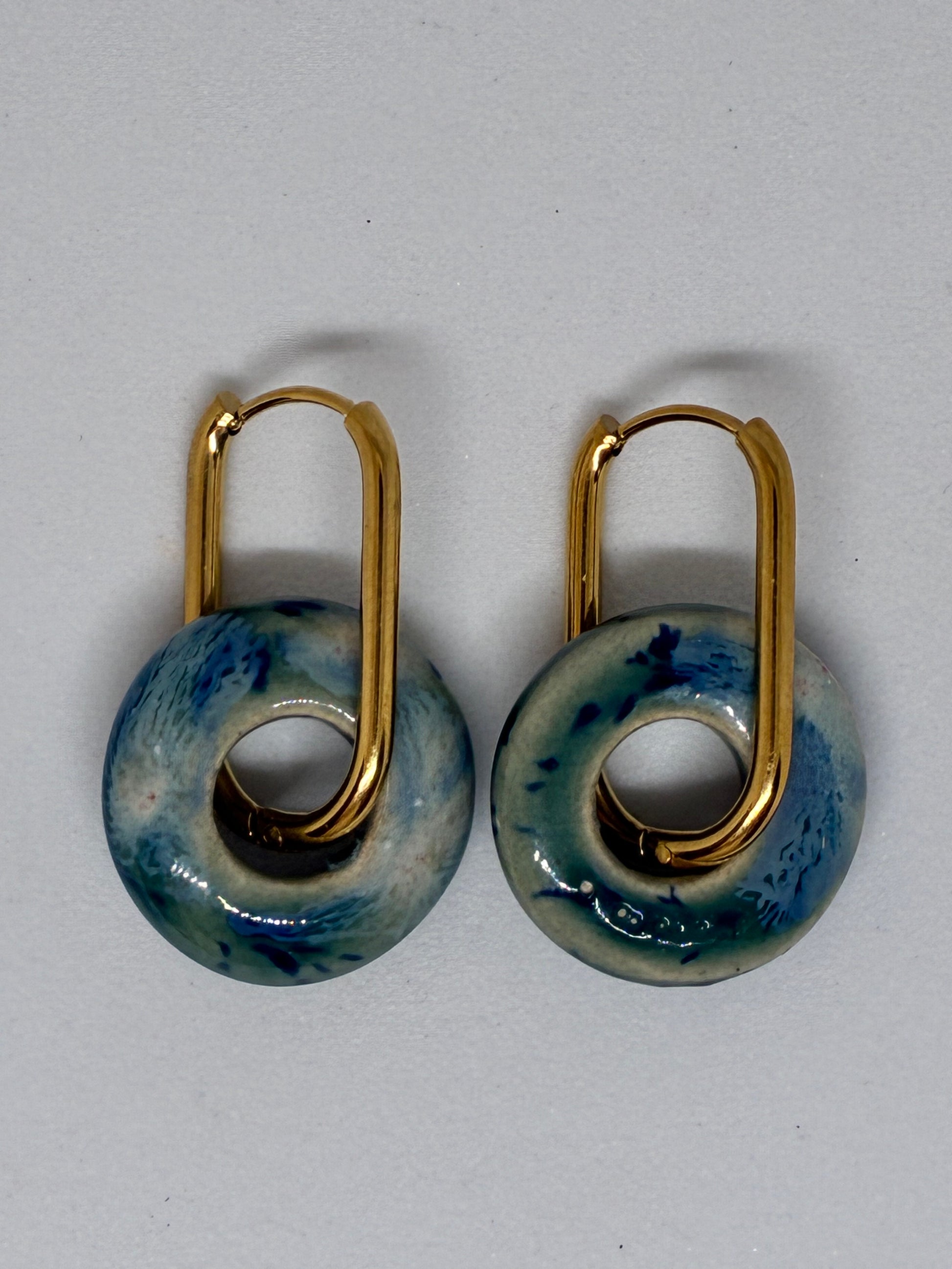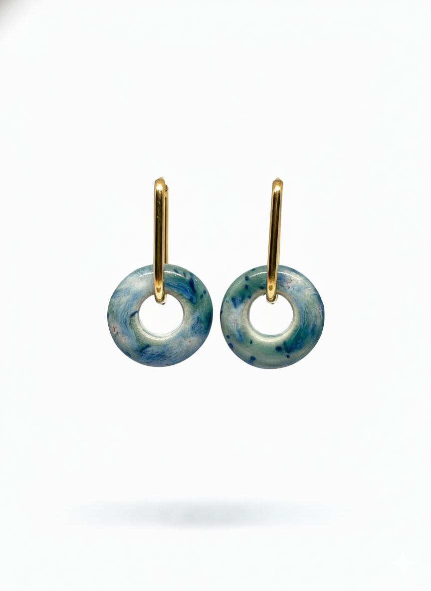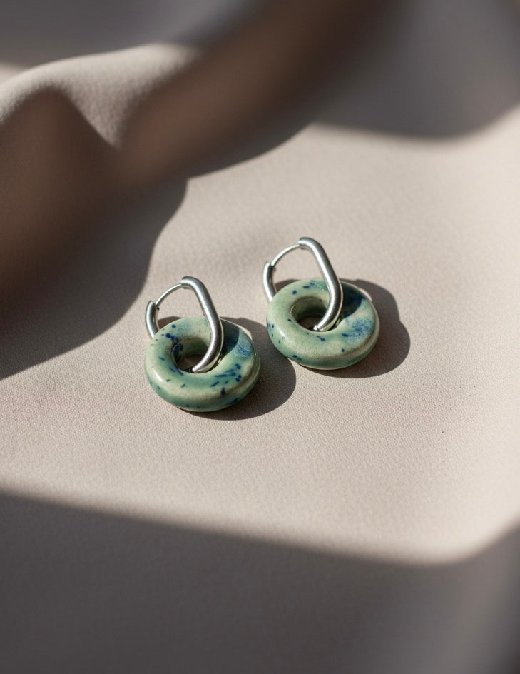 Cada pieza está cuidadosamente modelada y esmaltada a mano en cerámica, lo que hace que cada par sea único. Sus tonos azules evocan la calma de la playa, la brisa marina y la conexión con la naturaleza en estado puro.