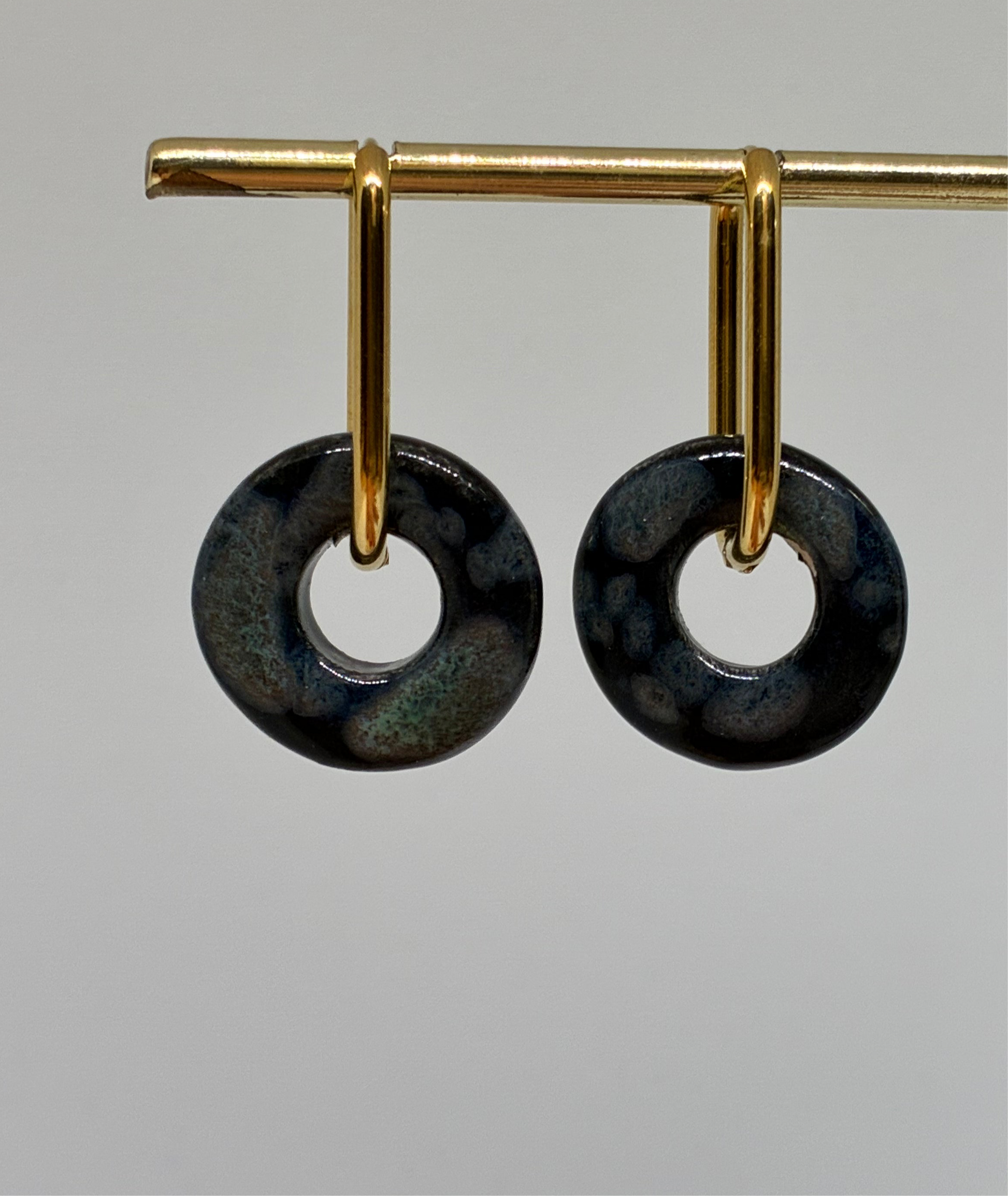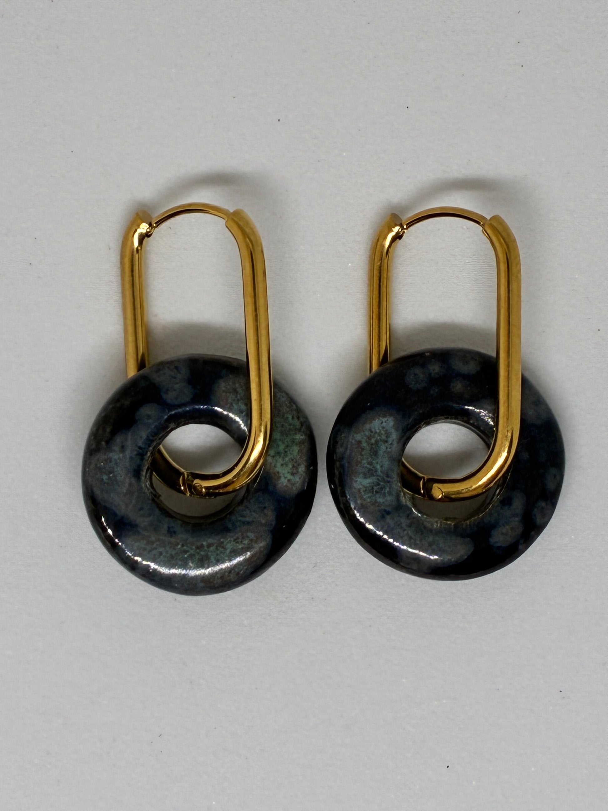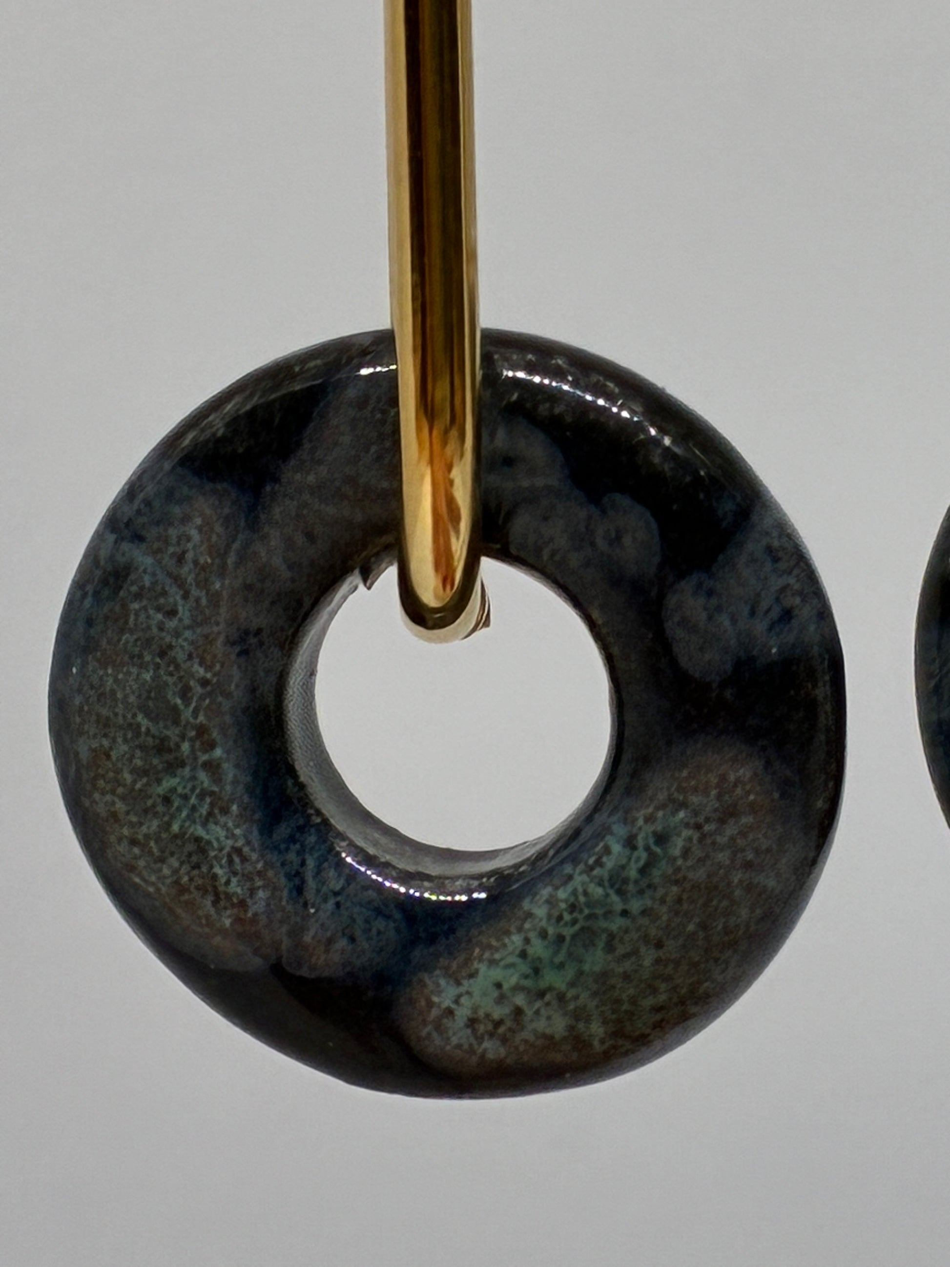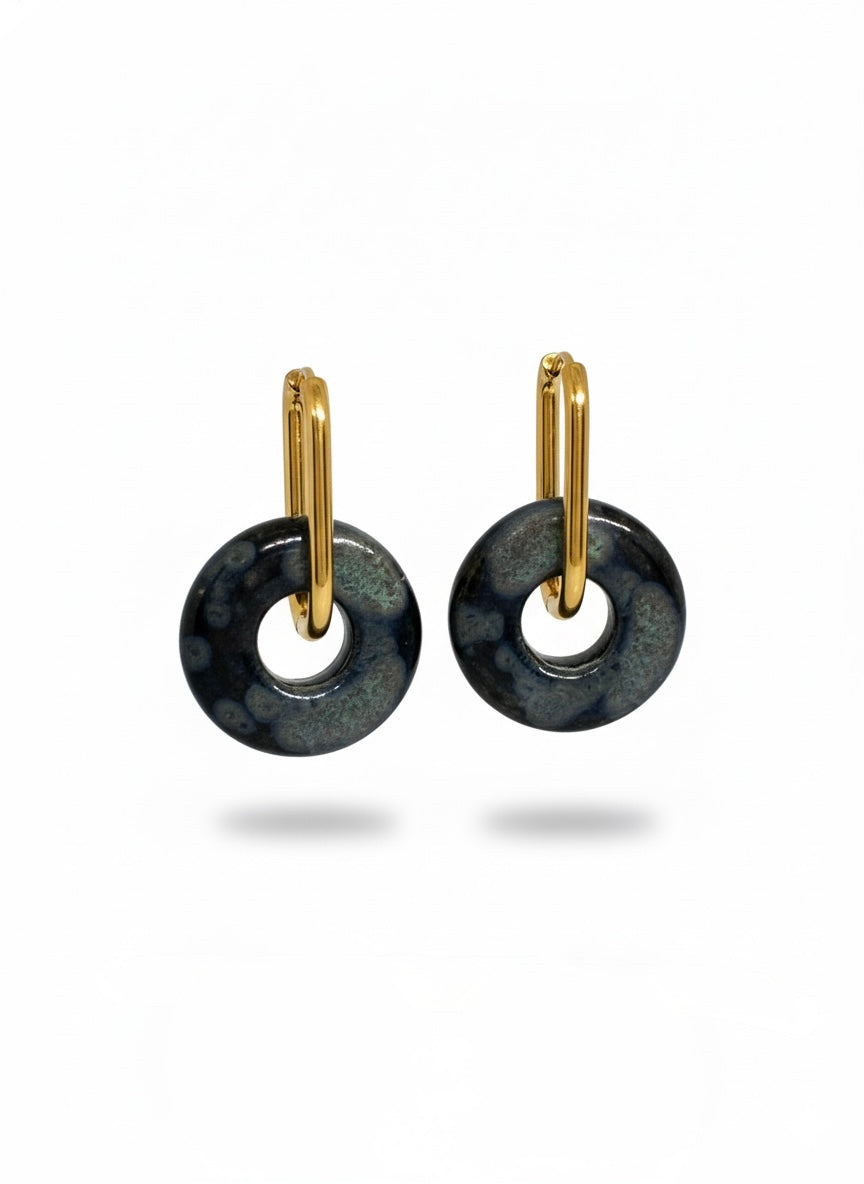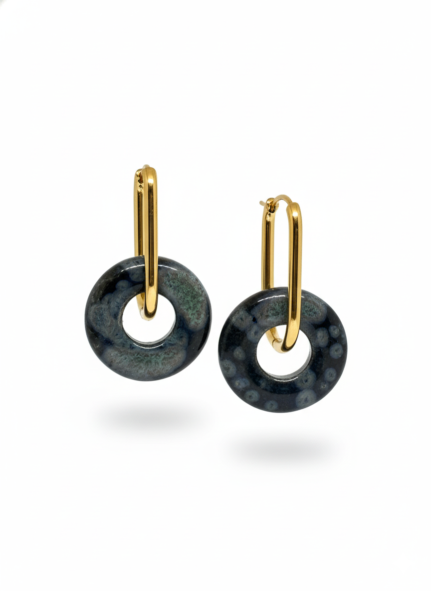 Cada pieza está modelada y esmaltada a mano en cerámica, lo que hace que cada par sea único. Su acabado en tonos oscuros y su diseño elegante los convierte en un accesorio versátil, ideal tanto para un look diario con carácter como para ocasiones especiales donde quieras destacar.